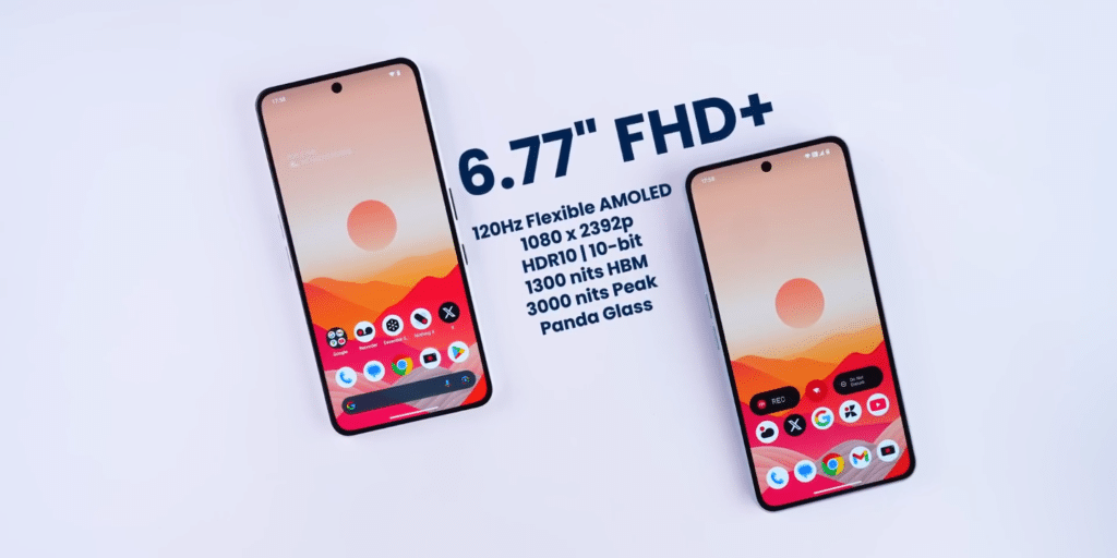 6.77 inch का Full HD+ 120Hz Amoled Display मिलता है। ये एक 10 bit Display है। HDR10 का सपोर्ट है। 1300 nits का Typical Brighness है। 3000 nits Peak Brighness है। और Panda Glass Protection मिलता है।