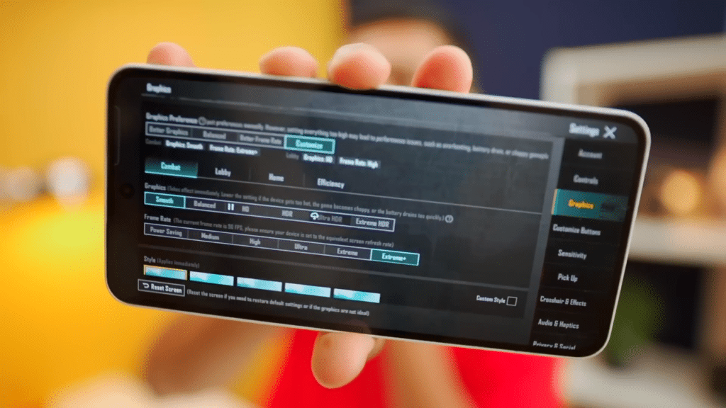 Bgmi में आप Smooth ग्राफिक्स पर Extreme+ मतलब 90FPS का गेमिंग कर पाओगे।
