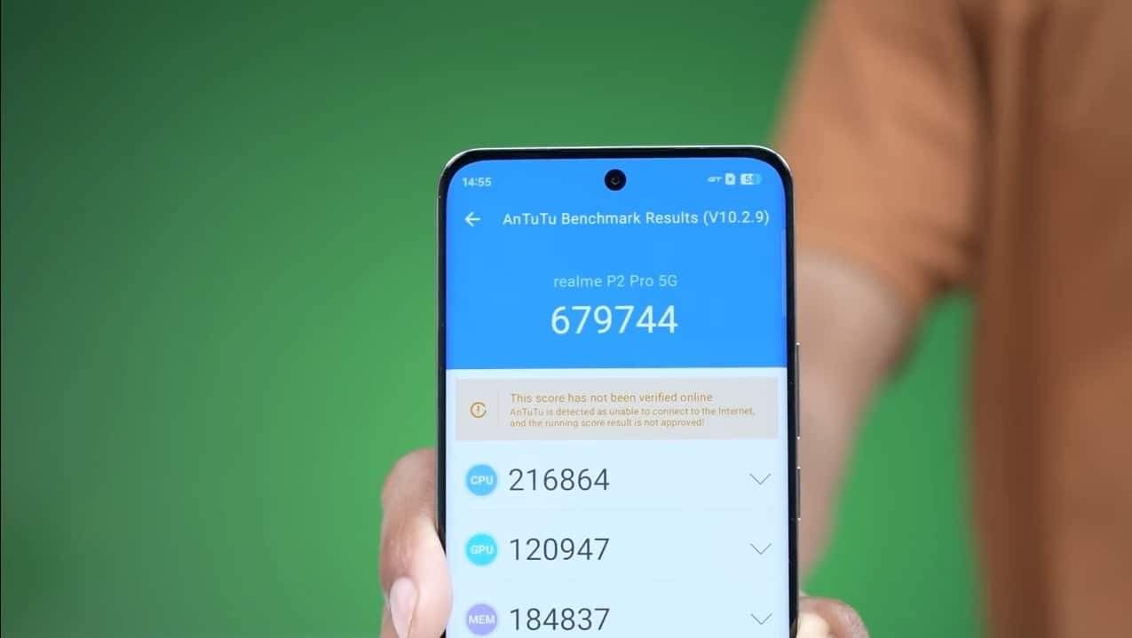 Realme P2 Pro का Antutu Score 679744 निकल कर आता है।