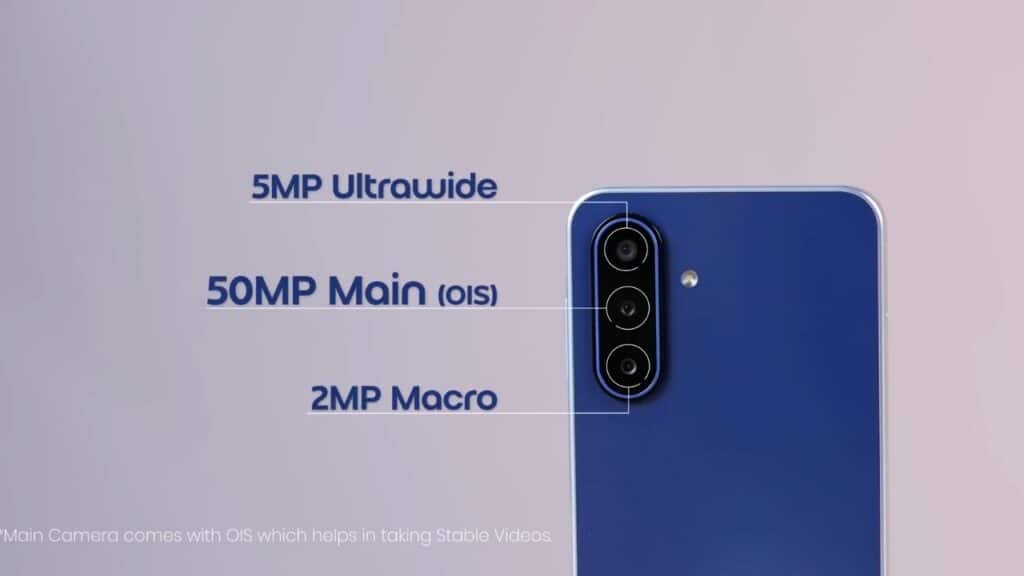 Samsung Galaxy M17 5G के Rear में Triple Camera का Setup मिलता है। 50MP का main Camera मिलता है। OiS के साथ। 5MP का Ultrawide Camera मिलता है। और 2MP का Macro Camera मिलता है। Front में 13MP का Selfie Camera मिलता है। Photo में Skin Tone और HDR अच्छे से Handle कर लेता है।