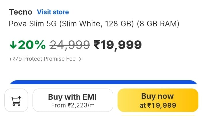 Tecno Pova Slim 5G के base Variant ka price ₹19,999 है।