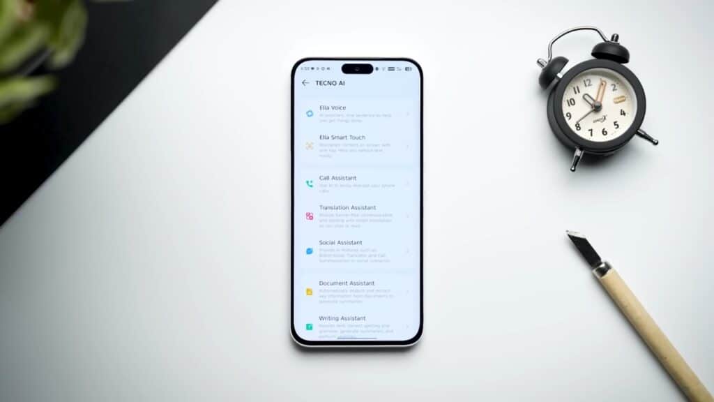 Tecno AI में है ella voice, ella Smart Touch, और call assistant, Translation assistant, और Social Assistant, Document assistant, Writing assistant, Circle to Search और भी बहुत सारे Tecno Pova Slim 5G AI Feature हैं।