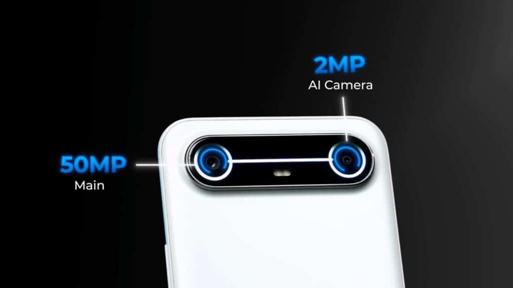 Tecno Pova Slim 5G फोन के rear में 2 camere का setup आता है। Main Camera 50MP का है, और दूसरा Camera 2MP AI Camera है।