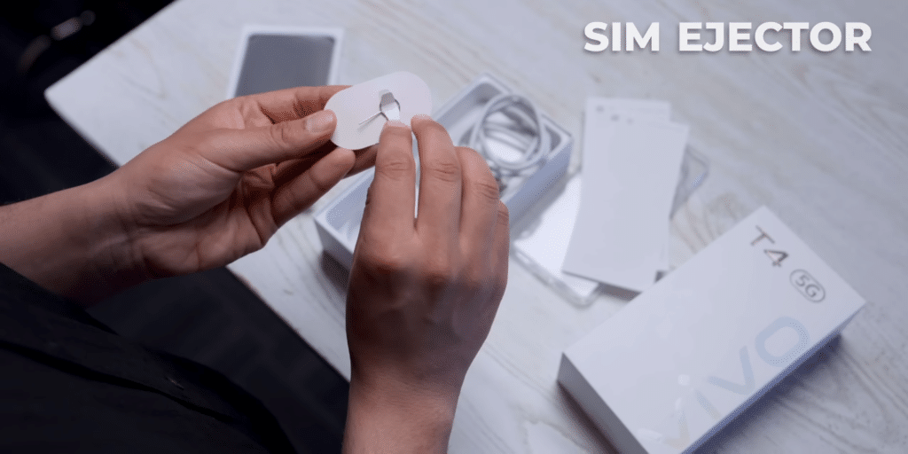 vivo T4 को अनबॉक्स करते ही सबसे पहले मिलता है फोन। इसके बाद मिलता है Transparent Cover. और फिर मिलता है 90 watt का Adopter और Type A to Type C Cable और Last में Sim Ejcetor Tool मिलता है। तो कुछ इतना कॉन्टेंट मिलता है हमें vivo T4 के Box में।