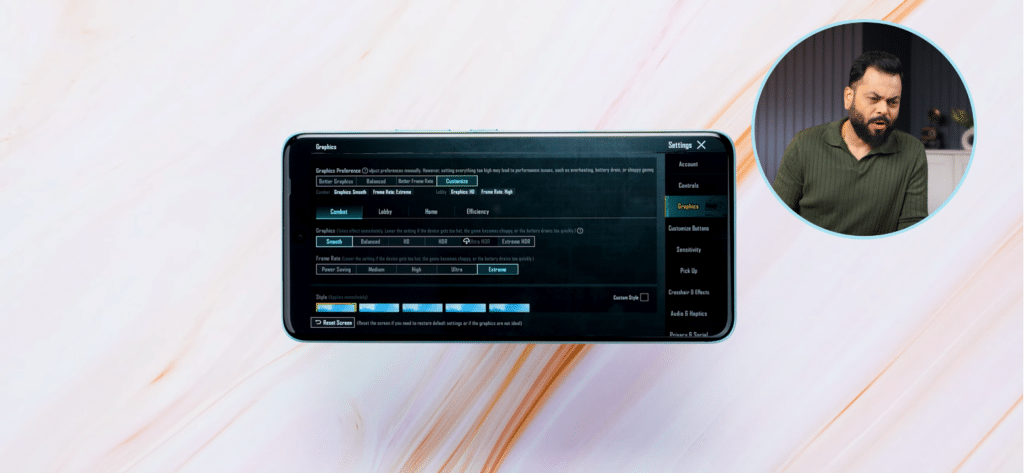 BGMI में Smooth ग्राफिक्स पर Extreme Fram rate का option मिलता है। मतलब 60 FPS का गेमिंग कर पाओगे।