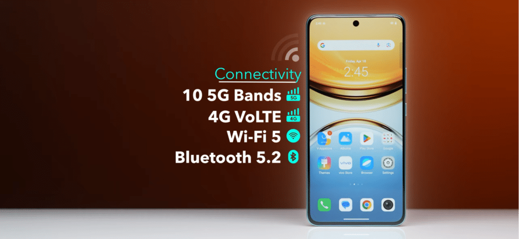 10 5G के Bands है और 4 Volte है। Wi-Fi 5 है और Bluetooth 5.2 है।
