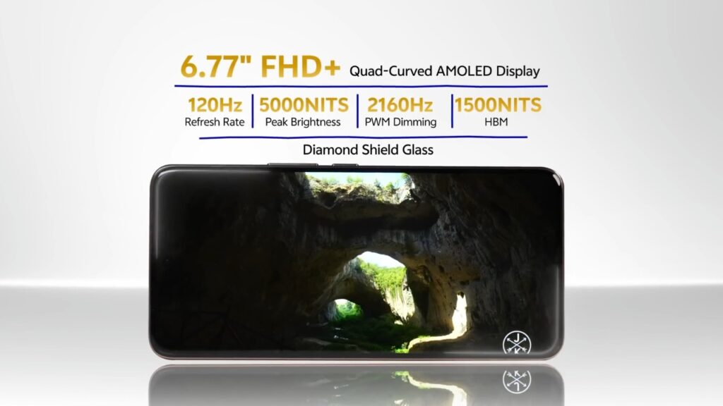 vivo v60 में 6.77 inch का Full HD + Quad Curve Display मिलता है। Display 120Hz Refresh Rate के साथ आता है। 5000 nits Peak Brightness मिलता है। 2160Hz PWM Dimming है। 1500Nits HBM है। Display में भी Diamond Shield glass का Protection है।